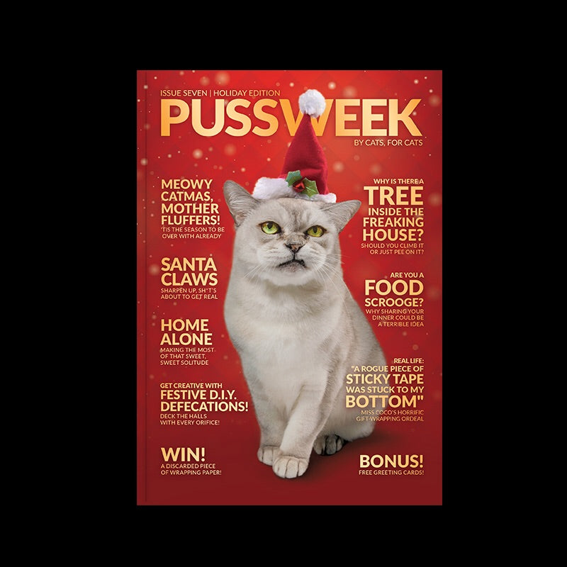 Meow! Summer is hot. It sucks to be shedding and exposing your belly to the bathroom floor in order to cool down. So what better way to wait out the inferno than to get issues #4, #6 & #7 of Pussweek?!! Yes, Christmas is hot here. We ship all over the world!