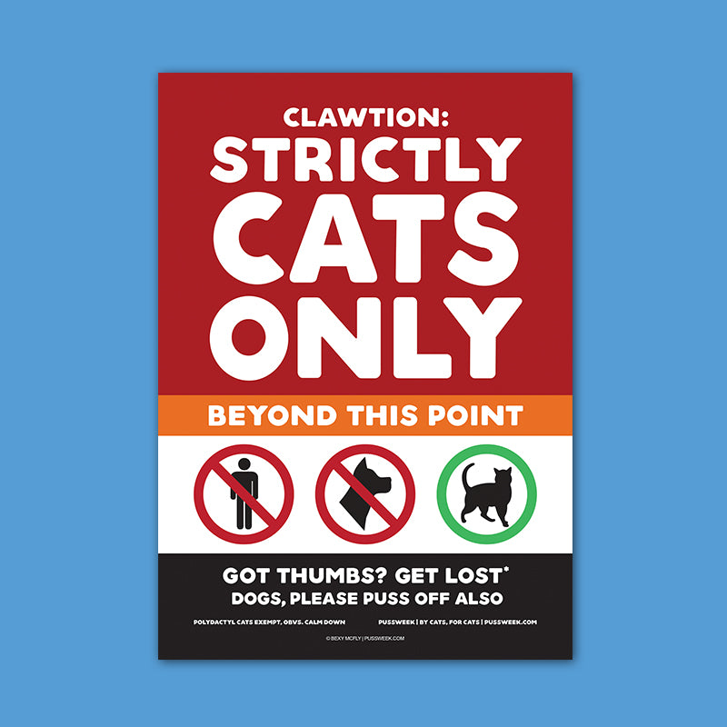 Stick a poster above your bowl, beside your litterbox, or use it to cover your human's annoying face.